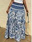 Women's Ethnic Casual Boho Maxi High Waist Skirts Floral Graphic Print Stretchy Daily Street Blue Summer Polyester