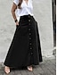70% Linen Women's Linen Skirts Cotton Linen Skirts Casual Maxi Mid Rise Skirts Plain Pocket Inelastic Daily Vacation Black Green Fall