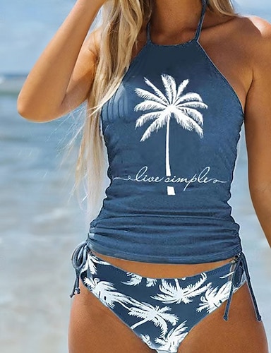 Women's Tankini Two Piece Swimsuit Swimwear Floral Swimwear Blue Breathable Quick Dry Lightweight Sleeveless - Swimming Surfing Beach Summer Spring Plus Size
