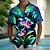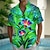 Men's Tropical Flowers Palm Leaf Neon Glow Summer Hawaiian Shirt Button Up Shirt Aloha Shirt Short Sleeve Hawaiian Vacation Summer Spring Turndown 3D Print Collared Shirts Front One Pocket Black