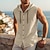 Men's Henley Shirt Vest Top Linen Tank Top Sleeveless Shirt Sleeveless Henley Summer Plain Fashion Designer Bohemian Buttons Vacation Casual Going out Black White Pink Top Tee for Men