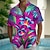 OUKU Men's Palm Leaf Tropical Plants Summer Hawaiian Shirt Button Up Shirt Short Sleeve Hawaiian Resort Vacation Holiday Beach Wear Summer Spring Turndown Collared Shirts Front One Pocket Pink Blue