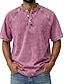 Men's T Shirt Henley Shirt 100% Cotton Acid Wash Shirt Tee Top Short Sleeve Plain Vintage Streetwear Casual Washed Raglan Sleeves Stand Collar Henley Casual Home Street Spring Fall Fall & Winter