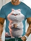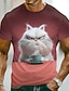 Men's Animal Cat Funny T Shirt Short Sleeve T shirt 3D Print Crew Neck Shirt Exaggerated Designer Party Holiday Blue Lake Blue Red Summer Spring Clothing Apparel S M L XL XXL XXXL