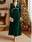 Women's Velvet Green Fall Winter Maxi Dress Pleated Dress Birthday Formal Regular Fit V Neck