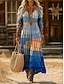 Women's Maxi Dress Boho Dress Vintage Dress Casual Dress Vintage Daily Outdoor Vacation Loose Fit Geometric Long Sleeve V Neck Blue Spring Autumn