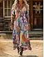 Women's Midi Dress Boho Dress Vintage Dress Casual Dress Vintage Classic Modern Daily Outdoor Vacation Regular Fit Floral Long Sleeve V Neck Rainbow Spring Autumn