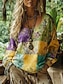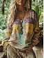 Women's Boho T-shirt T Shirt Tee Top Floral Color Block Vintage Ethnic Casual Long Sleeve V Neck Long Tops Daily Weekend Vacation Wear Print Yellow Summer Spring Fall
