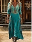 Women's Midi Dress Black Dress Lace Dress Party Dress Cocktail Dress Elegant Fashion Party Vacation Formal Wedding Guest Regular Fit Pure Color 3/4 Length Sleeve V Neck Black Spring Fall Winter Autumn