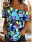 Women's T Shirt Graphic Plants Vintage Tropical Hawaiian Short Sleeve One Shoulder Asymmetric Neck Long Tops Daily Sports Going out Blue Black Orange Beige Summer Spring