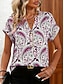 Women's T Shirt Graphic Paisley Vintage Stylish Casual Short Sleeve Notched Neck Regular Tops Daily Going out Weekend Print Blue Royal Blue Purple Brown Green Summer Spring