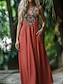 Women's Maxi Dress Boho Dress Floral Dress Vintage Fashion Modern Outdoor Vacation Going out Regular Fit Floral Sleeveless V Neck Red Summer Spring