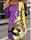 Women's Mini Dress Sheath Dress Vacation Casual Holiday Regular Fit Graphic Long Sleeve Crew Neck Yellow Green Fall Winter