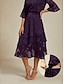 Women's Skirt Elegant Casual Midi Mid Waist Skirts Floral Lace Ruffle Irregular Hem Micro-elastic Date Casual Daily Eggplant Spring, Fall, Winter, Summer Polyester