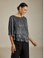 Women's Blouse Dressy Tops Chiffon Tops Solid Color Elegant 3/4 Length Sleeve Crew Neck Wedding Guest Holiday Pleated Glitter Silver Summer Spring Fall