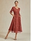 Women's Midi Dress Chiffon Dress Sequins Elegant Wedding Guest Evening Party Regular Fit Solid Color 3/4 Length Sleeve Crew Neck Pink Summer Spring Fall Winter