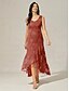 Women's Midi Dress Chiffon Dress Elegant Vacation Wedding Guest Date Regular Fit Floral Flutter Sleeve V Neck Pocket Illusion Coral Red Summer Spring Fall
