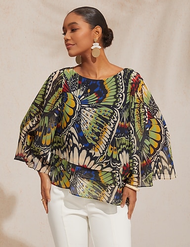 Vacation Artistic Floral Dolman Sleeve Satin Top