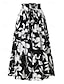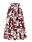 Women's Elegant Fashion Casual Midi High Waist Skirts Floral Drawstring Print Micro-elastic Daily Street Navy Wine Red Black Green Summer Spandex Polyester