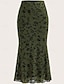 Women's Casual Midi Mid Waist Skirts Floral Print Inelastic Daily Street Black Dark Green Spring Spandex Polyester