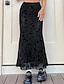 Women's Casual Maxi High Waist Skirts Floral Floral Stretchy Daily Date Black Summer Polyester