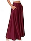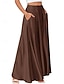 Women's Satin Skirts Elegant Casual Maxi Mid Rise Skirts Plain Ruched Pocket Inelastic Daily Vacation Blue Wine Apricot Black Summer Polyester