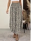 Women's Vacation Skirt Cute Casual Maxi Mid Rise Skirts Floral Ruched Print Stretchy Street Going out Black Summer Polyester