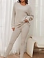 Femmes Chemise de Nuit Occasionnel Confort Lettre Broderie T-shirt Maison Quotidien manche longue Col ras du cou Rose Claire Beige Automne Hiver Coupe régulière