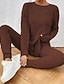 Femmes Pyjamas Loungewear Ensemble Pyjama Occasionnel Couleur Unie Taille Élastique Pantalon Maison Quotidien Lit manche longue Col ras du cou Noir bleu marine Fuchsia Orange Marron Automne Hiver