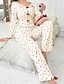 Femmes Pyjamas Loungewear Ensemble Pyjama Occasionnel Fleuri Taille Élastique Pantalon Maison Quotidien Lit manche longue Col de chemise Beige Automne Hiver Coupe régulière