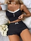 Pyjama de Noël pour femme, tenue de détente, ensemble de pyjama, short de pyjama, mode, simple, décontracté, graphique, dessin animé, Père Noël, short, maison, lit, sans manches, rouge, noir, noir,