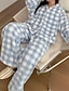 Femmes Pyjamas Loungewear Ensemble Pyjama Occasionnel Grille / Carreaux Taille Élastique Boutons Pantalon Maison Quotidien manche longue Col en V Bleu clair Automne Hiver Coupe Ample