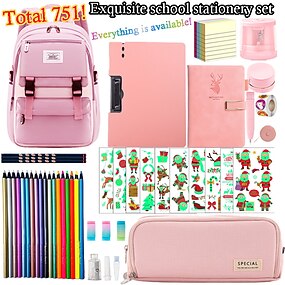751 Pieces Back to School Supplies Kit, School Essentials Supplies Set Bulk for Girls, Boys, Teachers. Includes Backpack, Pencils, Folders, Notebooks