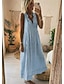Women's Long Dress Maxi Dress Faux Cotton Linen Shift Dress Sundress Swing Dress Elegant Basic Modern Beach Vacation Holiday Regular Fit Plain Sleeveless V Neck Blue Summer