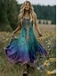 Women's Midi Dress Boho Casual Dress Swing Dress Summer Dress Dress Vintage Beach Regular Fit Graphic Color Gradient Sleeveless Crew Neck Blue Green Summer Spring