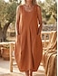 Women's Midi Dress Cotton Blend Shift Dress Sundress Fashion Basic Classic Daily Outdoor Holiday Regular Fit Plain Sleeveless Crew Neck White Orange Khaki Light Blue Summer