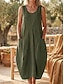 Women's Midi Dress 100% Cotton Shift Dress Sundress Casual Dress Basic Classic Casual Daily Outdoor Regular Fit Pure Color Sleeveless U Neck ArmyGreen Navy Blue Orange Apricot Summer Spring