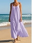 Women's Midi Dress Cotton Linen Dresses Shift Dress Sundress Slip Dress Fashion Modern Daily Outdoor Vacation Loose Fit Plain Sleeveless Straps Black White Purple Light Blue Summer Spring