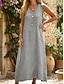 Women's Maxi long Dress Faux Cotton Linen Boho Dress Shift Dress Sundress Fashion Modern Daily Vacation Holiday Regular Fit Graphic Color Block Sleeveless Crew Neck Blue White Summer Spring Fall