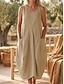 Women's Midi Dress Cotton Linen Dresses Shift Dress Sundress Tank Dress Fashion Modern Daily Outdoor Holiday Loose Fit Plain Sleeveless V Neck Blue Pink Beige Grey Summer Spring
