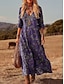 Women's Maxi Dress Sundress A Line Dress Summer Dress Vacation Casual Boho Holiday Loose Fit Ombre Floral Graphic Sleeveless V Neck Notched Neck Aqua Blue Sage Green Lilac Summer Spring