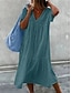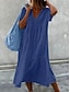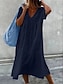 Women's Midi Dress Shift Dress Sundress White Dress Cotton Linen Dresses Casual Daily Vacation Loose Fit Plain Short Sleeve V Neck Blue Black White Pink Summer Spring