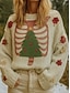 Women's Sweater Pullover Daily Casual Graphic Christmas Tree Ribbed Crew Neck Knitted Print Long Sleeve Regular Tops Knit Outdoor Weekend Beige Fall Winter