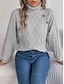 女性用 ニット プルオーバー エレガント ファッション ストリートファッション 純色 タートルネック パッチワーク ニット プリント 長袖 レギュラートップス ニット アウトドア 日常 祝日 ブラック ホワイト 秋 冬