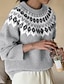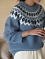 女性用 ニット プルオーバー ストリートファッション カジュアル 幾何学模様 クルーネック ニット プリント 長袖 レギュラートップス ニット 日常 祝日 お出かけ ブルー グレー 秋 冬