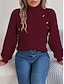 女性用 ニット プルオーバー エレガント ファッション ストリートファッション 純色 リブ タートルネック ニット プリント 長袖 レギュラートップス ニット アウトドア 日常 祝日 ワインレッド ブラック 秋 冬