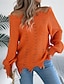 女性用 ニット プルオーバー ストリートファッション カジュアル 純色 クルーネック ニット 長袖 レギュラートップス ニット 日常 祝日 お出かけ ブラック オレンジ 秋 冬