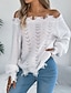女性用 ニット プルオーバー ストリートファッション カジュアル 純色 オフショルダー すかしカット ニット 長袖 レギュラートップス ニット 日常 祝日 お出かけ ブラック ホワイト 秋 冬