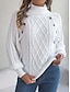 女性用 ニット カジュアル ソフト ピュアカラー リブ タートルネック ボタン ニット 長袖 レギュラートップス ニット アウトドア 日常 週末 ホワイト ピンク 秋 冬