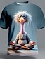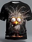 Mens 3D Funny Crazy Bird T Shirt Big Eyes Ostrich Graphic Tees Messy Feathers Print Short Sleeve Summer Casual Tops Clothing Apparel S M L XL XXL XXXL
